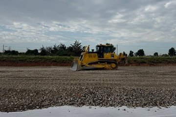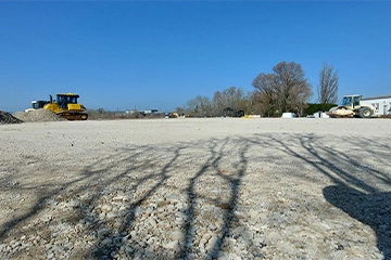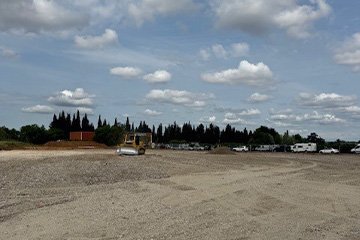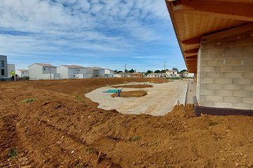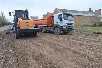 Utilisation de 3 500 tonnes de 0/80 recyclé livrées à Bouillargues (30) pour la création d’une plateforme à destination d’un hangar agricole de stockage de matériels.