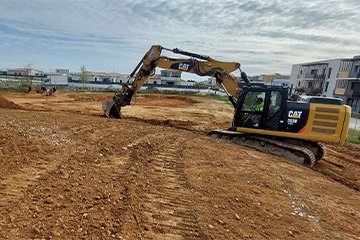 Mise en place de 2 300 tonnes de terre végétale en 0/10 et 0/30 pour végétaliser les abords et la cour d’un nouveau collège à Garons (30).
